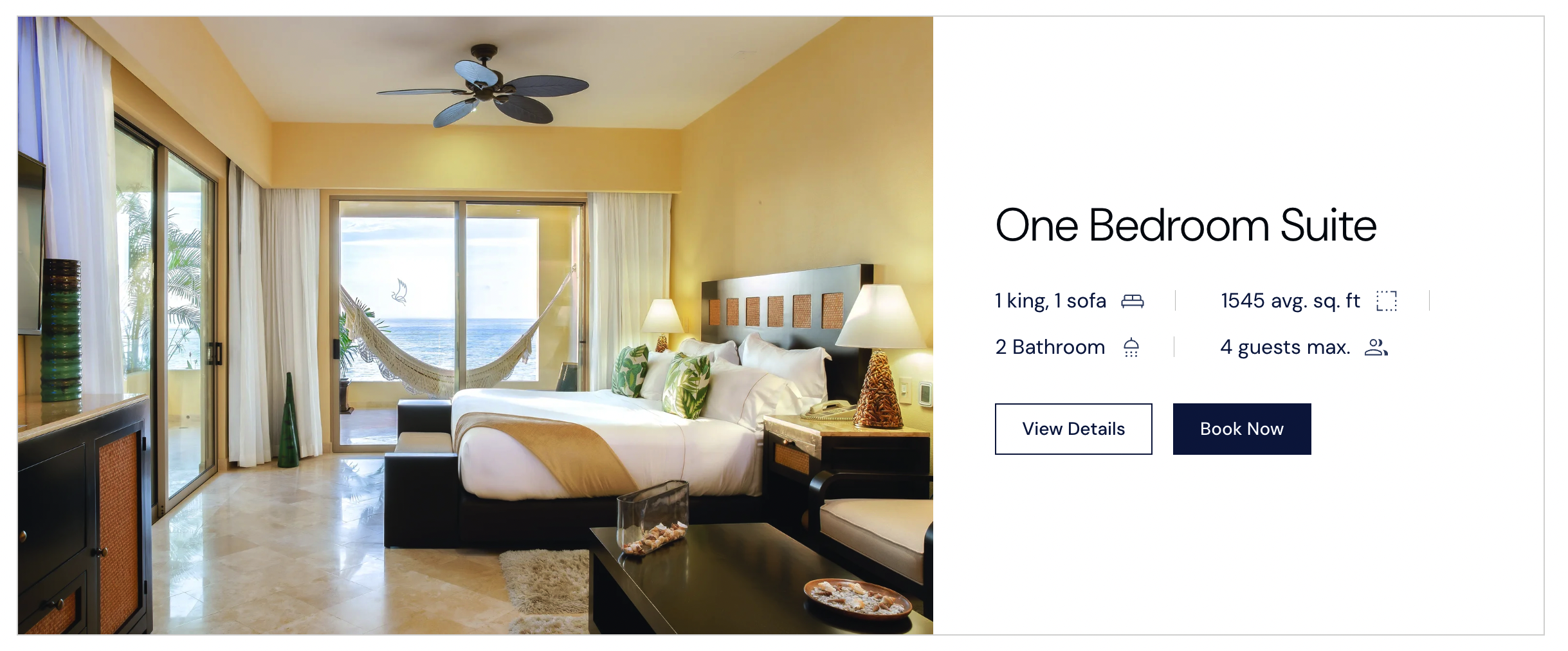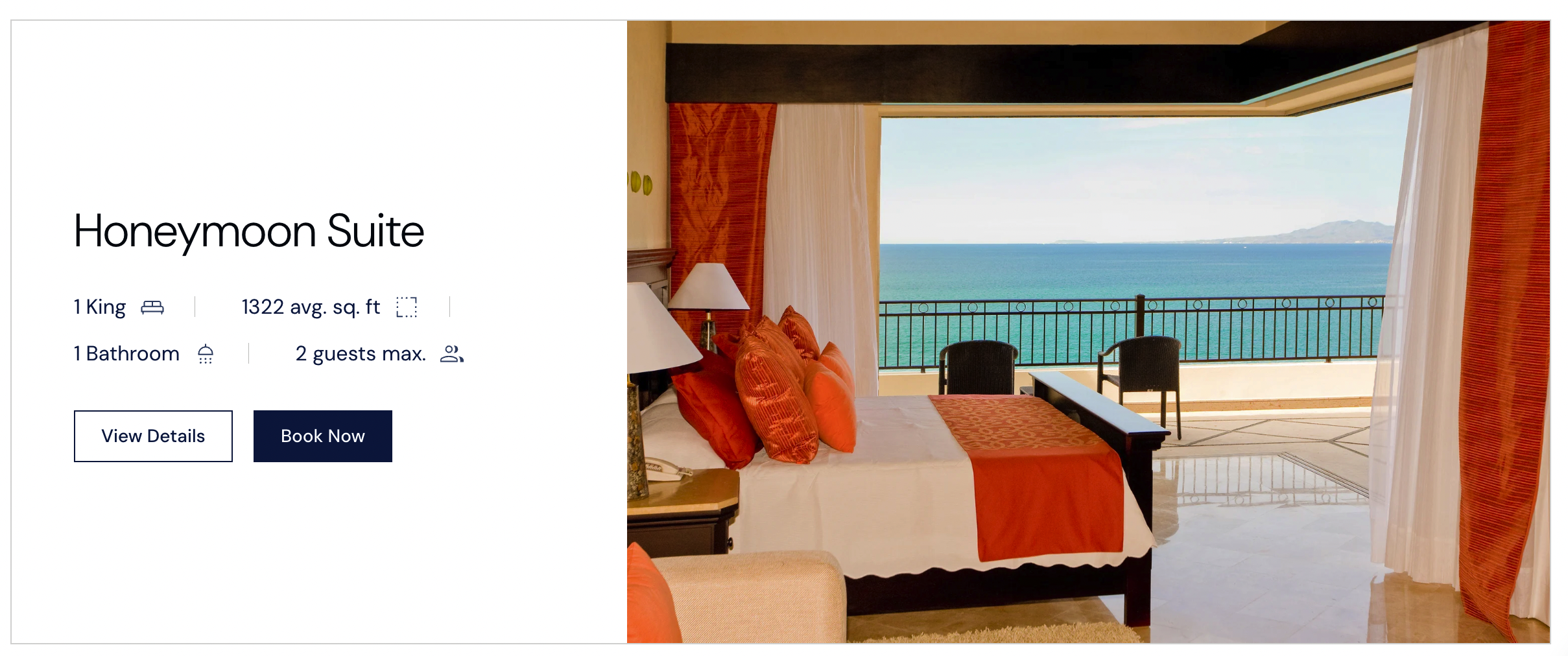 1 King| 1322 avg. sq. ft| 1 Bathroom| 2 guests max